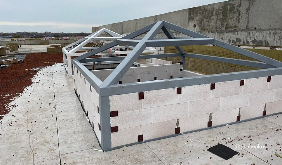 Параллельно выполняются работы по монтажу инженерных сетей и гидроизоляции кровли.