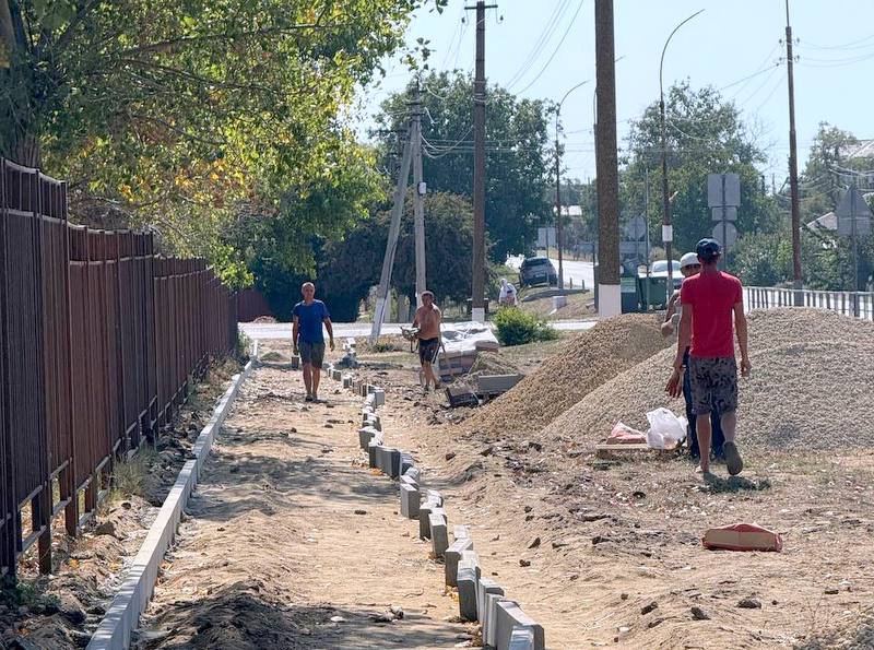 В поселениях Темрюкского района продолжаются работы по благоустройству и ремонту общественных территорий, обновляются тротуары и дороги.