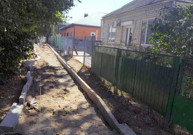 В станице Запорожской проводится текущий ремонт тротуара по улице Ленина — вдоль ограждения школы № 11, на участке от пер. Советский до пер. Школьный.