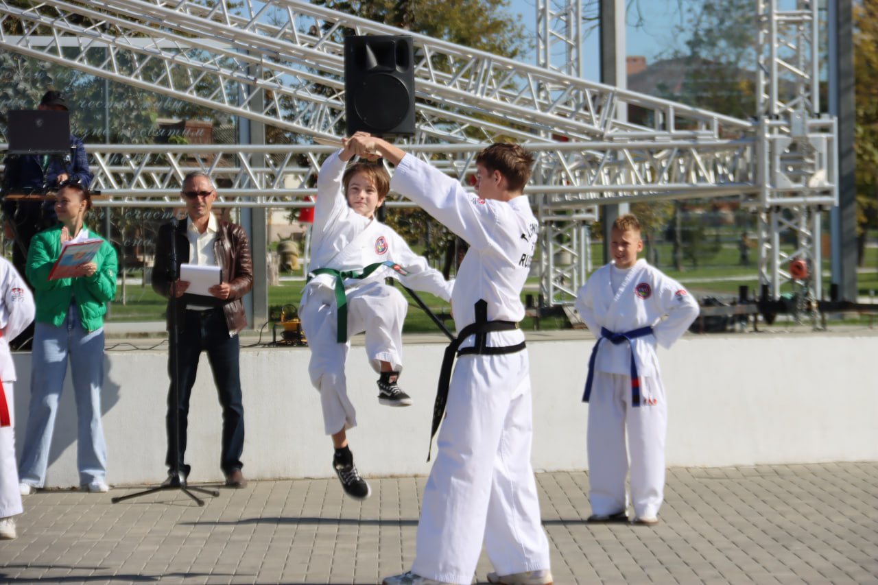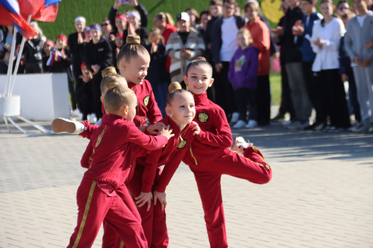 Торжественная часть завершилась яркими показательными выступлениями воспитанников секций художественной гимнастики и тхэквондо, а также хореографического коллектива «Наследие Кубани», подарившего зрителям яркий творческий номер.