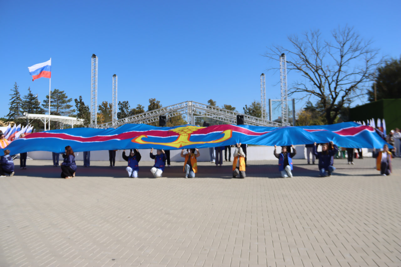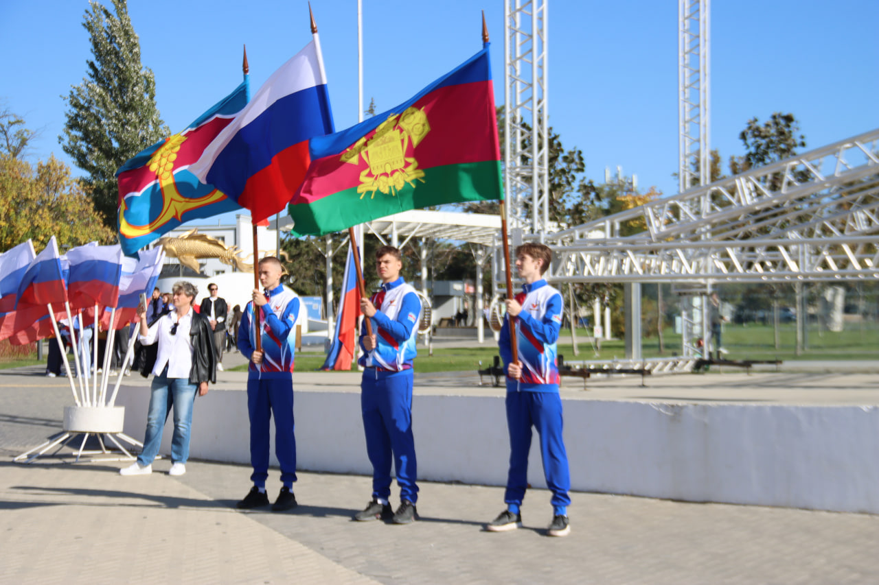 Кульминацией мероприятия стала церемония поднятия Государственного флага Российской Федерации на площади Труда. Почетное право поднять флаг было предоставлено капитану команды — победителю первенства края по баскетболу 2025 года Георгию Тарасюку. Затем молодежь Темрюкского района развернула флаг своей малой родины.