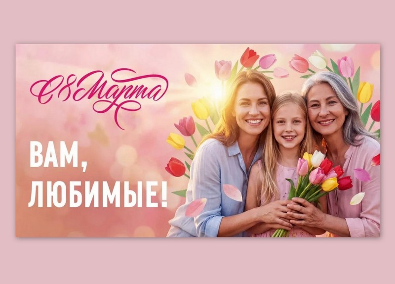 Сегодня женщины успешно реализуют себя практически во всех сферах деятельности. Ваша чуткость, забота и неравнодушие делают мир теплее и добрее — и в профессиональной среде, и в кругу семьи. Вы не только создаёте уют и храните домашний очаг, но и с достоинством справляетесь с самыми серьёзными задачами.
