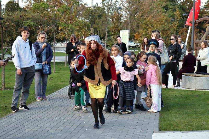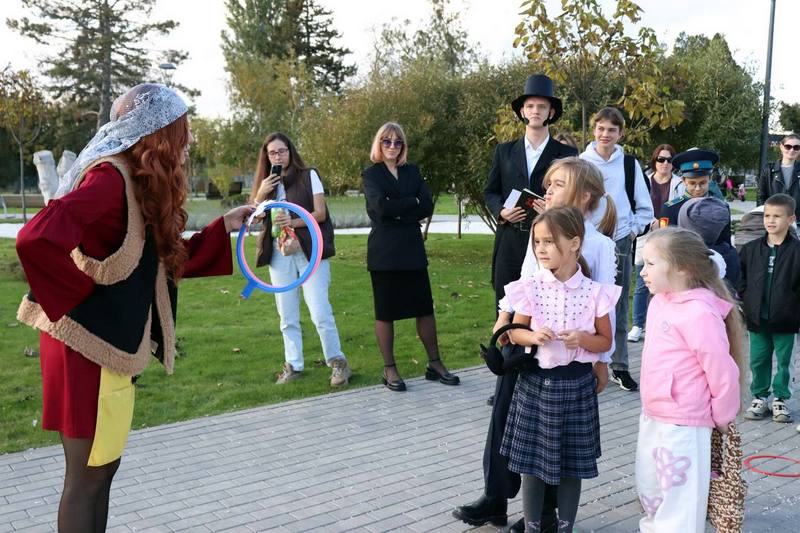 Затем экскурсия перенесла гостей в удивительный мир сказок Александра Сергеевича Пушкина. Они узнали о связи великого поэта с Темрюком и... встретились с ним самим! От «солнца русской поэзии» гости услышали историю парка, носящего его имя, и погрузились в его творчество.