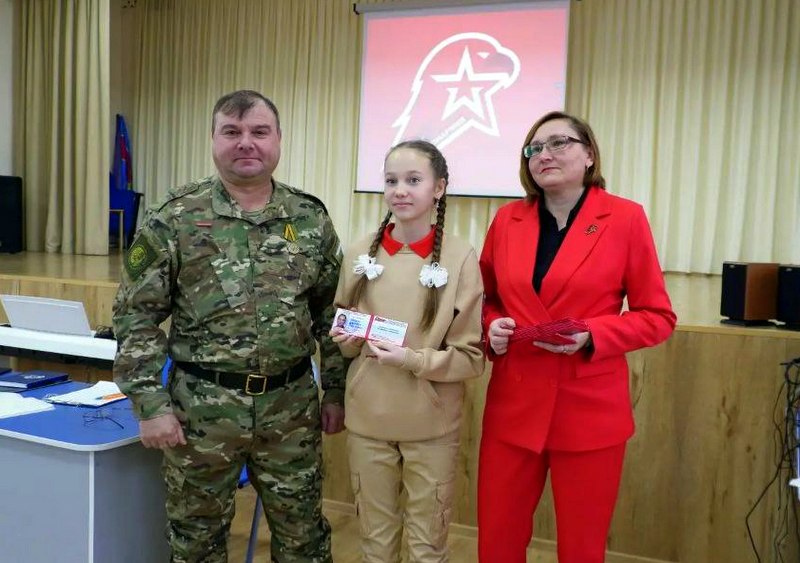 На заседании вручены удостоверения членам Совета юнармейских командиров.