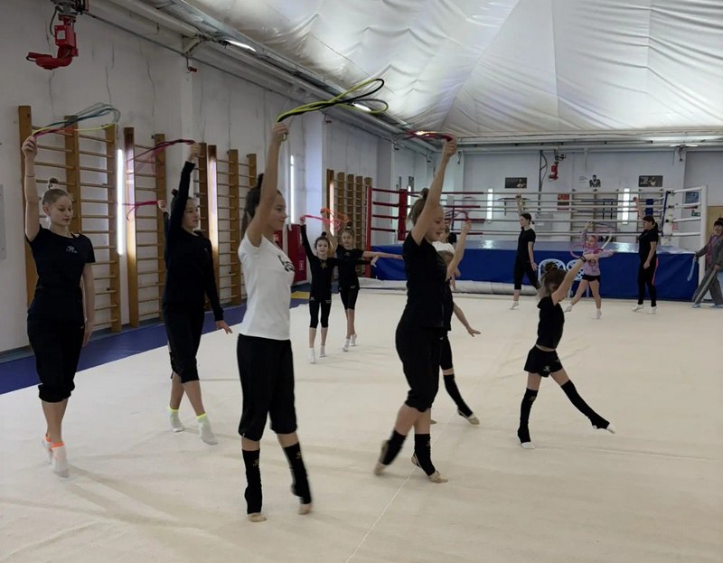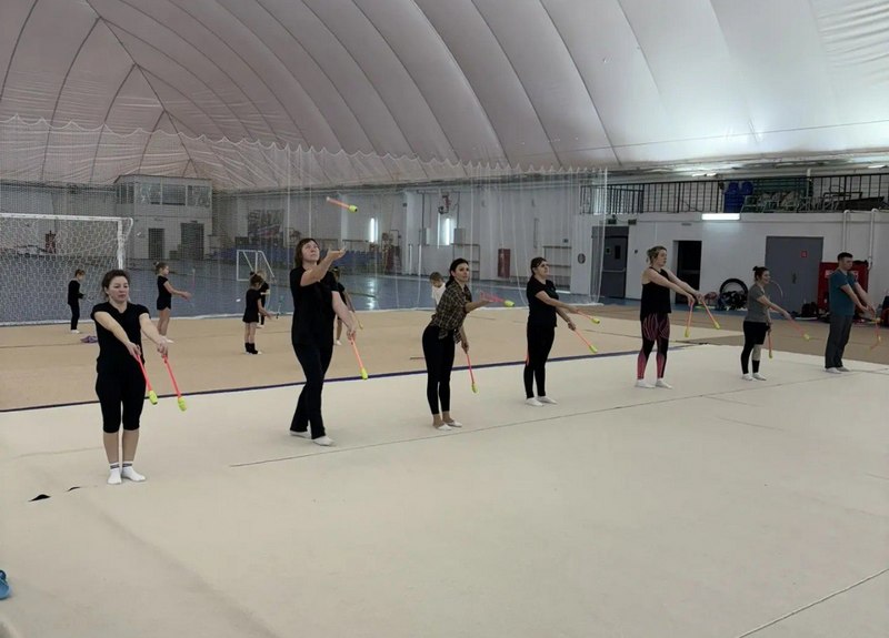 В новогодние каникулы тренеры спортивной школы организовали необычную тренировку. Наталья Павлова и Наталья Шерстобитова, преподаватели отделения художественной гимнастики, провели совместное занятие для воспитанниц и их родителей.