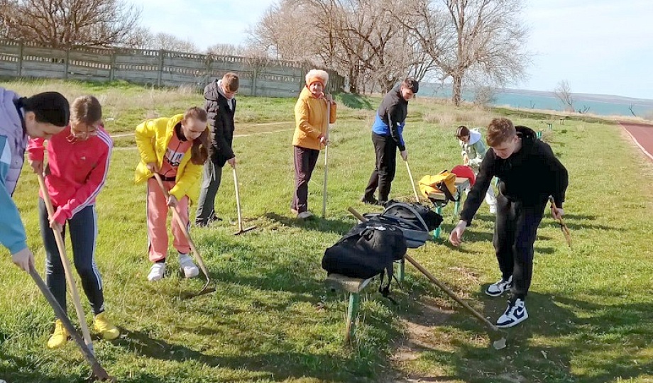 Юные спортсмены сделали паузу в тренировках и вооружились садовым инвентарём, чтобы привести в порядок территории и места проведения учебно-тренировочных занятий.