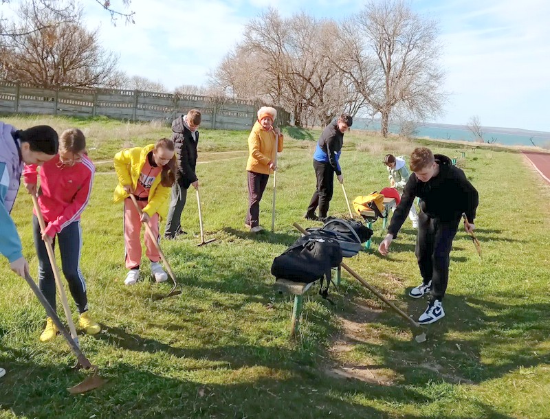 Юные спортсмены сделали паузу в тренировках и вооружились садовым инвентарём, чтобы привести в порядок территории и места проведения учебно-тренировочных занятий.