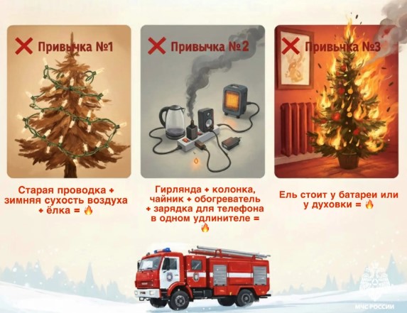 Новый год — время традиций. Но некоторые из них давно пора отправить на пенсию вместе с VHS-кассетами. МЧС России напоминает: есть новогодние привычки, которые выглядят безобидно, но каждый год приводят к десяткам пожаров.