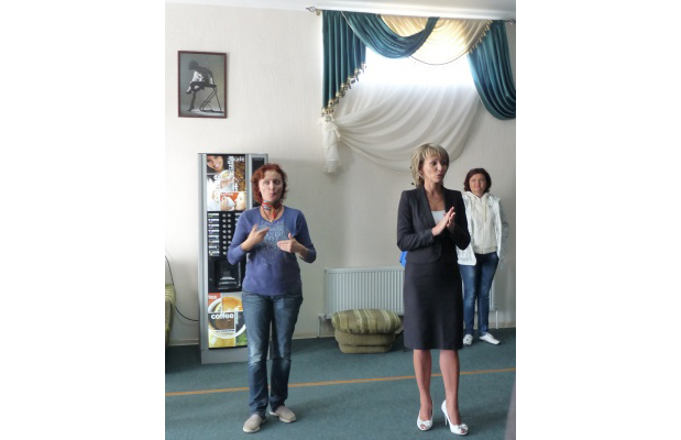 Ее слова  жестами  донесла  собравшимся председатель местного отделения Ирина Савельева, владеющая техникой сурдоперевода.