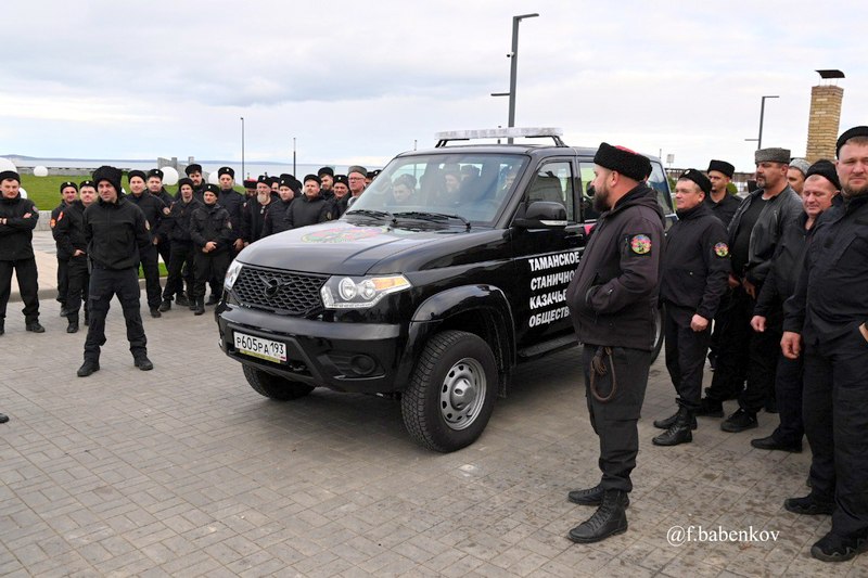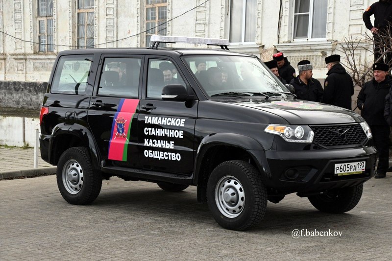 Казакам Таманского станичного казачьего общества торжественно передали ключи от нового автомобиля УАЗ «Патриот». Машина поступила в ЧОП «Рать» в рамках программы оснащения первичных казачьих обществ транспортом.