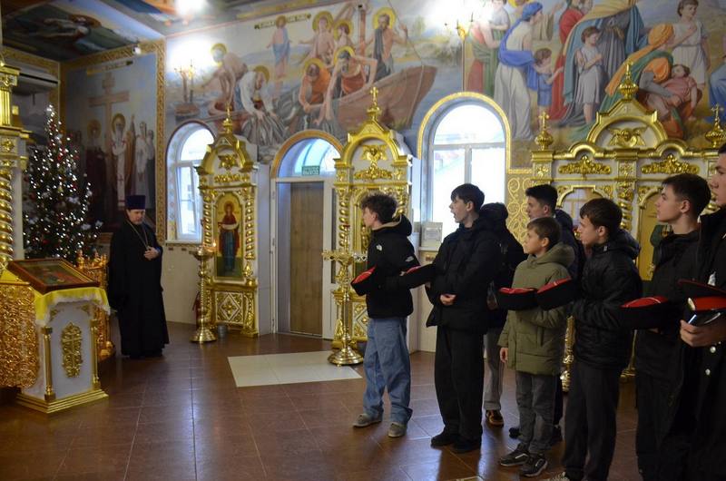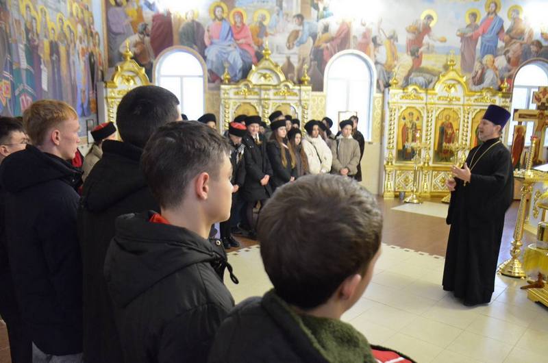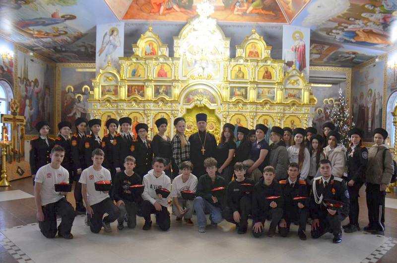 Храм города Темрюк посетили участники проекта «Лидеры казачьей молодежи» Темрюкского района. Гостей радушно встретил настоятель храма, протоиерей Виталий Колмык. Отец Виталий рассказал присутствующим о празднике Светлого Христова Рождества, раскрыл перед ребятами глубокий смысл этого праздника и его духовную значимость, которая находит отклик в каждом сердце. Он также рассказал о традициях и обычаях, связанных с празднованием Нового года и Рождества Христова. Учителя и ученики проявили живой интерес к беседе: внимательно слушали священника и активно задавали вопросы.