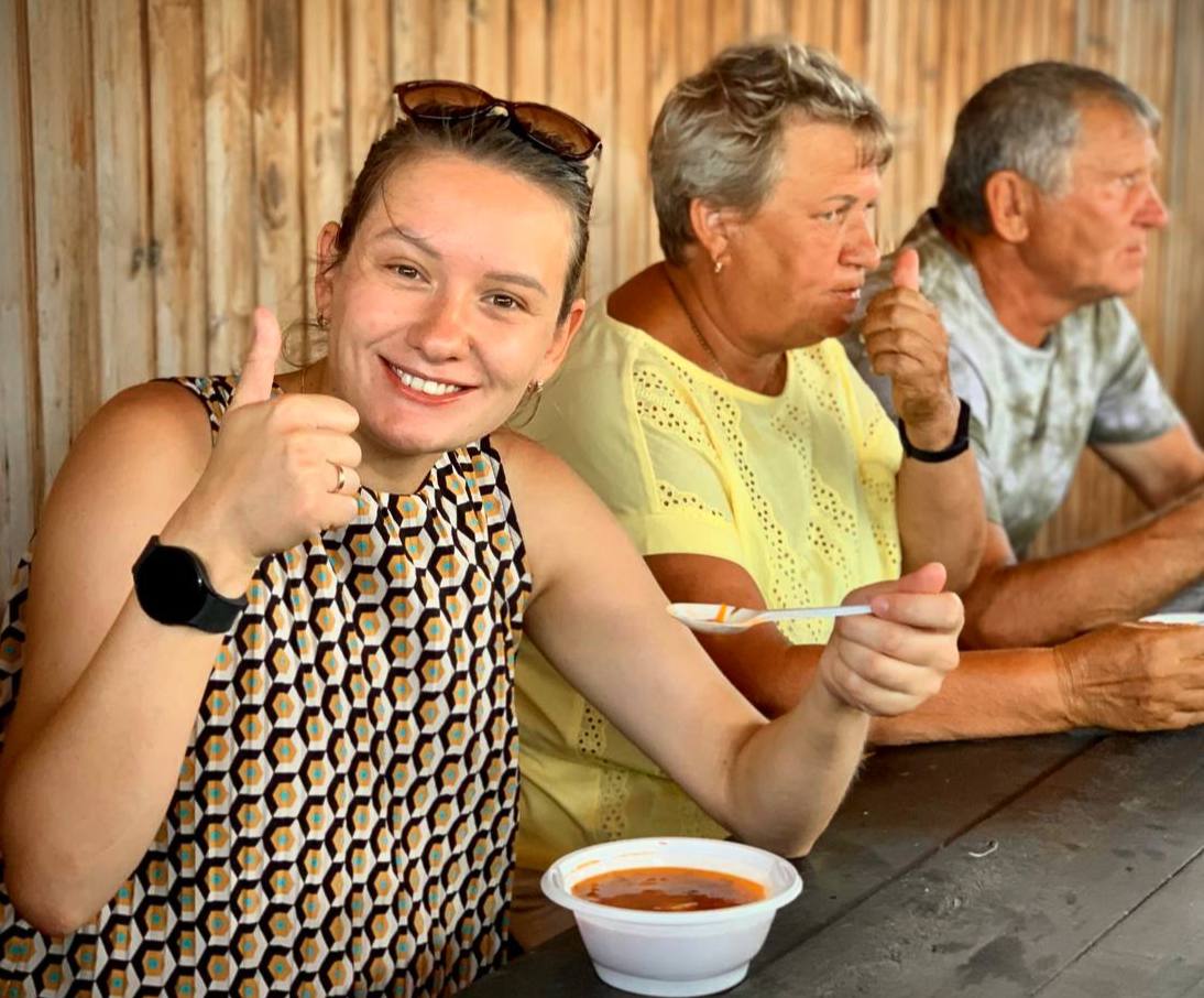 На станичной рыночной площади в этот день сварили 1.000 литров борща, проводили викторины и раздавали подарки!