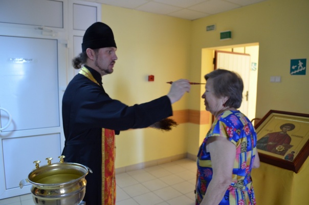 Протоиерей Виталий поздравил всех с праздником, пожелал терпения, благополучия и Божьего благословения. Отец Виталий окропил святой водой и помазал пациентов и медперсонал святым маслом. Все желающие смогли приложиться к иконе святого Пантелеимона Целителя, содержащей частицу его целебных мощей.