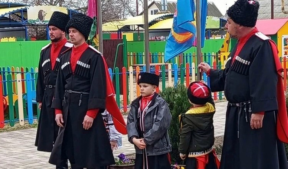 Торжественная церемония открытия задала высокий патриотический тон всему мероприятию: под руководством казаков-наставников воспитанники детского сада — казачата — торжественно подняли флаги Российской Федерации и Краснодарского края.