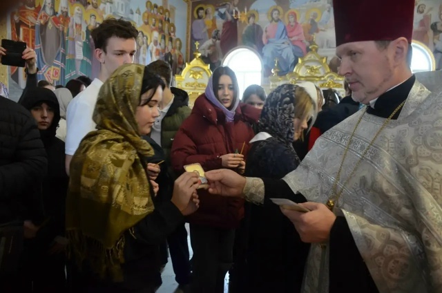 Молились о молодом поколении. По окончании протоиерей объяснил присутствующим духовный смысл праздника Сретения Господня для христианина, что в контексте Дня православной молодёжи праздник Сретения символизирует знакомство современной молодёжи с православием, его культурой, историческими и духовными ценностями. Затем он пожелал молодёжи твёрдо держаться духовно-нравственных ценностей, хранить целомудрие и чистоту рассудка, подавая ближним пример стойкости в вере, милосердии и отзывчивости, подарив каждому икону на память о встрече.