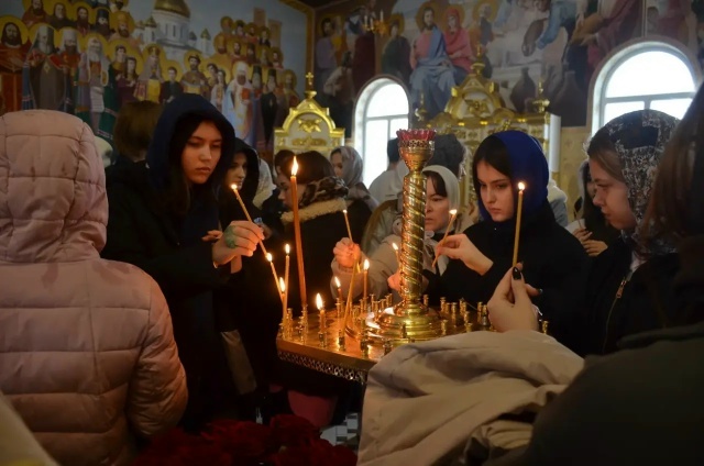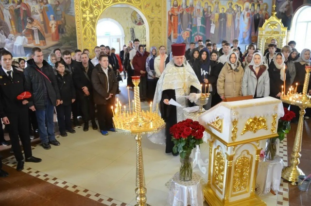 Настоятель храма протоиерей Виталий Колмык совершил молебен, на котором присутствовало более 100 человек - студенты и старшеклассники городских учебных заведений, а также работающая молодёжь.