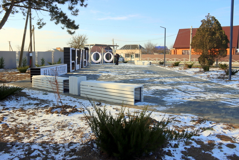 За счет средств краевого и местного бюджетов уложена тротуарная плитка, установлены малые архитектурные формы, урны, лавочки и парковое освещение, высажены можжевельник, кипарисовик и кизильник.