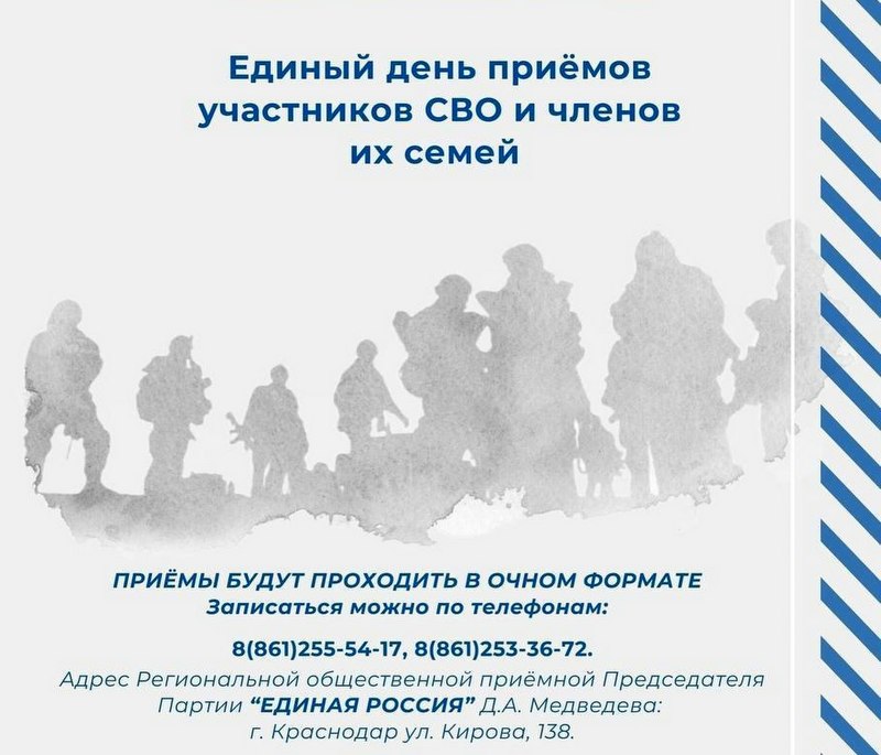 В Краснодаре пройдёт Единый день приёмов участников СВО и их семей