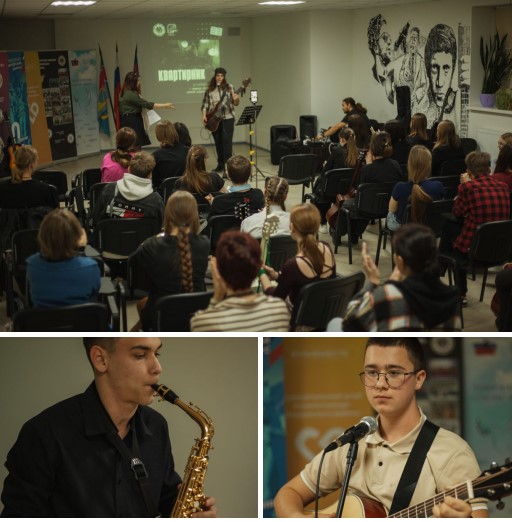 В кругу единомышленников творческая молодежь делилась талантами: они играли на бас-гитаре, саксофоне, укулеле и акустической гитаре, пели песни и читали авторские стихи.