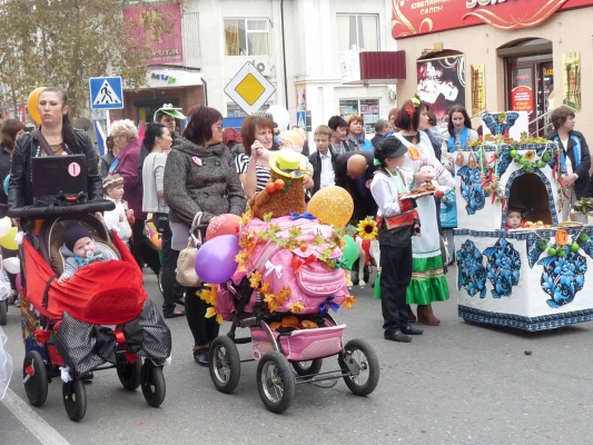- 25 детских колясок, привлекая внимание всех участников и гостей праздника, проехались по главной улице Темрюка. Оригинально выглядели не только коляски, но и непосредственные владельцы этого вида «транспорта» - малыши. В коробке с апельсинами сидел «Чебурашка», в печке «Ивашка» с пирожками, среди арбузов в корзине «казачка». Тачанкой управляли два «казачка», на облаке расположился «ангелочек», с большой морковкой ехал «зайка», - рассказали в управлении по вопросам семьи и детства, специалисты которого вновь организовали это мероприятие. - Мы увидели воплощение еще многих замечательных идей. Родители и группы поддержки тоже постарались соответствовать образу и стилю своих творений.