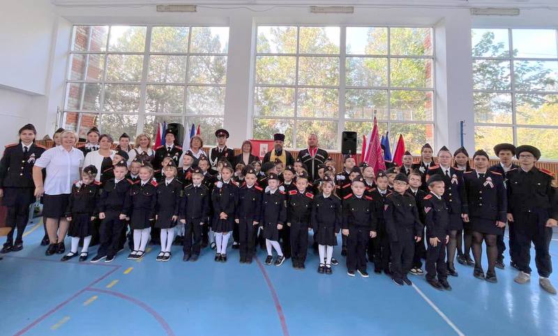 39 казачат дали клятву, пополнив ряды кадетских классов. Мероприятие открылось выносом флагов и исполнением гимнов. Торжественную клятву зачитал атаман школы Андрей Комбаров, а обряд окропления казачат совершил настоятель Свято-Никольского храма посёлка Стрелка протоиерей отец Алексей.