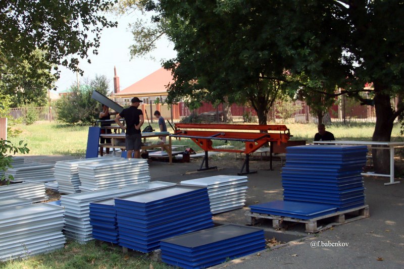 В образовательном учреждении подрядная организация проводит монтаж обрешётки и установку панелей. Цветовое решение фасада гармонирует с уже существующим зданием спортивного комплекса, которое построено на территории школы в 2023 году.