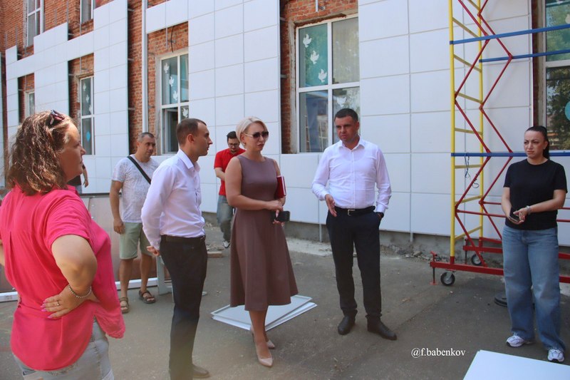 Глава района Фёдор Бабенков обсудил с подрядчиком и директором школы сроки выполнения работ и конструктивные решения.