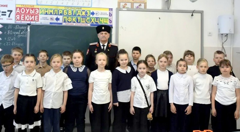 В школе № 21 прошел необычный урок для учеников 2-го класса. Занятие, посвященное казачьей детворе и славной истории кубанского казачества, провел казак-наставник Голубицкого хуторского казачьего общества Олег Ефимов.