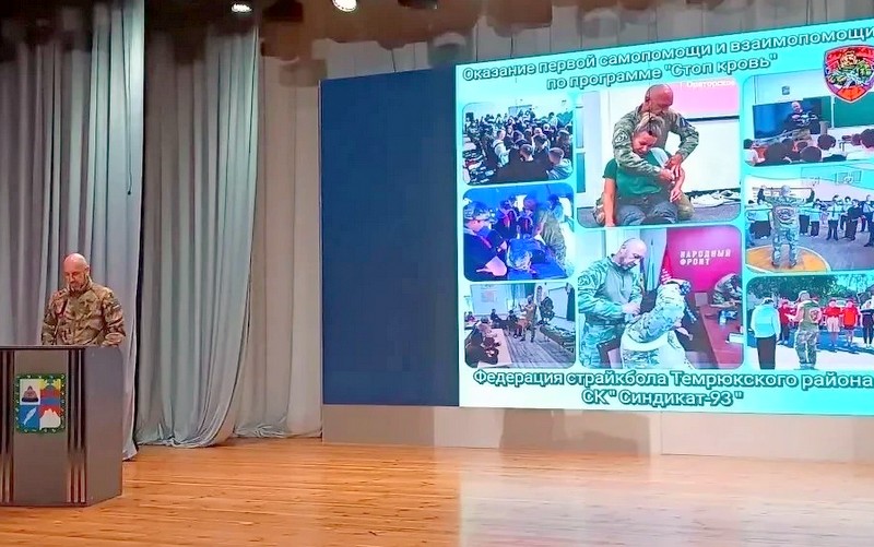 Перед участниками выступили: заместитель директора по научной работе и дополнительному образованию Кубанского казачьего государственного института пищевой индустрии и бизнеса Елена Романова, депутаты районного Совета Александр Бизяев и Андрей Залевский, а также старшина штурмовой роты, инженер средств радиоэлектронной борьбы Александр Фролов.
