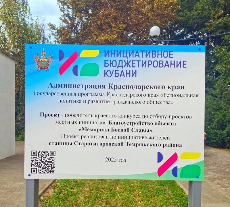 В рамках реализации проекта по инициативному бюджетированию завершена реконструкция общественной территории «Мемориал Боевой Славы», расположенного в парке по улице Ленина станицы Старотитаровской.