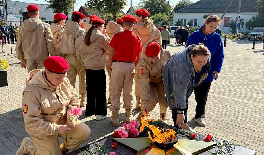 В Старотитаровской прошла торжественная церемония возложения цветов к Вечному огню к 82-й годовщине освобождения.