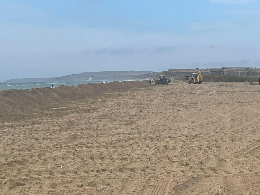 Вал делают вдоль всего пляжа, чтобы защитить озеро Соленое, которое является особо охраняемой природной территорией. Вал, как и в Анапе, делают для защиты во время штормовой погоды от возможных новых выбросов нефтепродуктов.
