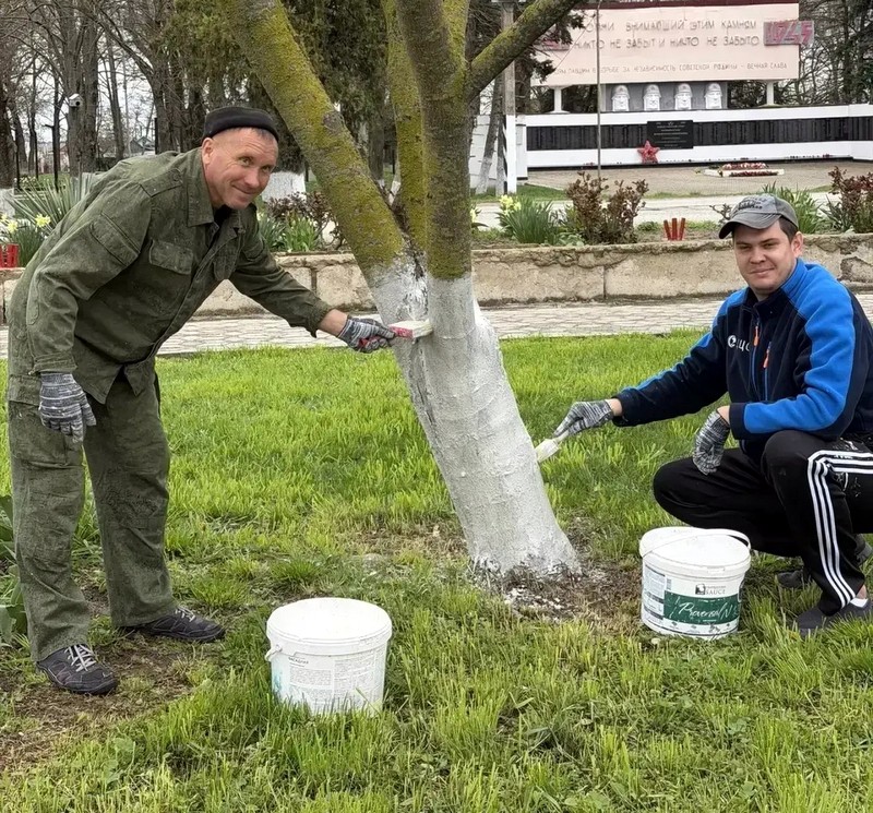Жители поселка Солёный Сенного сельского поселения также присоединились к Всекубанскому субботнику: побелили деревья, убрали поросли и сорную траву.
