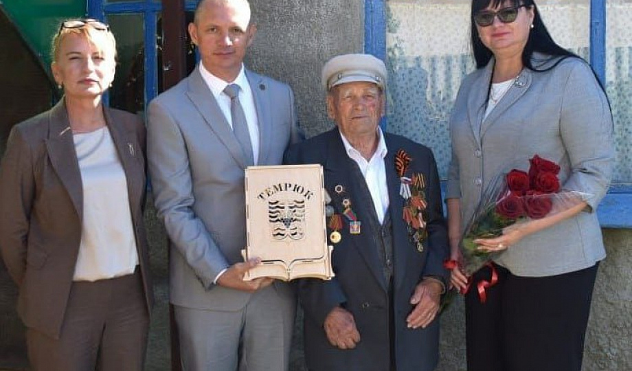 Глава Темрюкского городского поселения Владимир Сидоров, председатель городского Совета Ольга Гусева и заместитель главы Светлана Рафикова пожелали ветерану крепкого здоровья и выразили благодарность за Великую Победу.