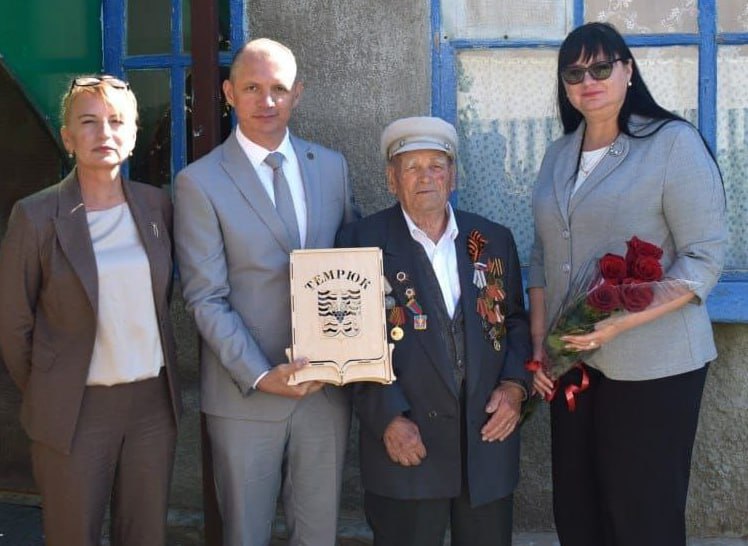 Глава Темрюкского городского поселения Владимир Сидоров, председатель городского Совета Ольга Гусева и заместитель главы Светлана Рафикова пожелали ветерану крепкого здоровья и выразили благодарность за Великую Победу.