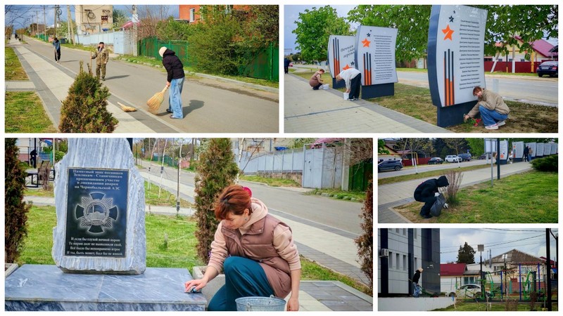 Волонтёрский отряд «Данко» станицы Голубицкой провёл субботник у памятного знака землякам-станичникам, участвовавшим в ликвидации последствий аварии на Чернобыльской АЭС, а также на аллее славы, где увековечены имена уроженцев и жителей станицы, сражавшихся в Великой Отечественной войне.