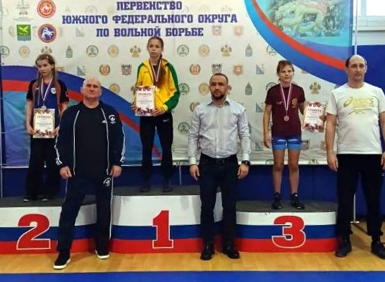 В финальной схватке спортсменка показала отличную борьбу и заслуженно поднялась на высшую ступень пьедестала почета, завоевав золотую медаль и звание чемпионки Южного Федерального округа.