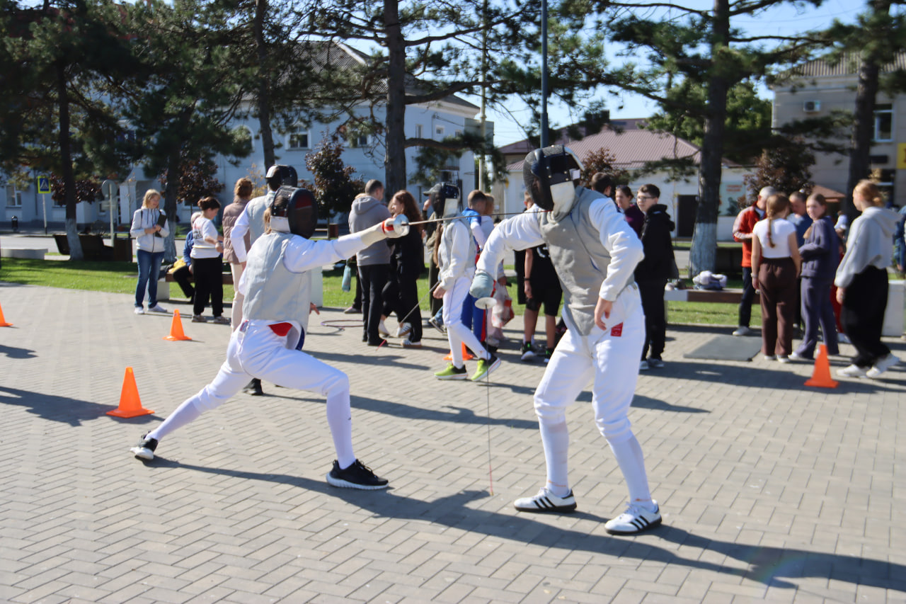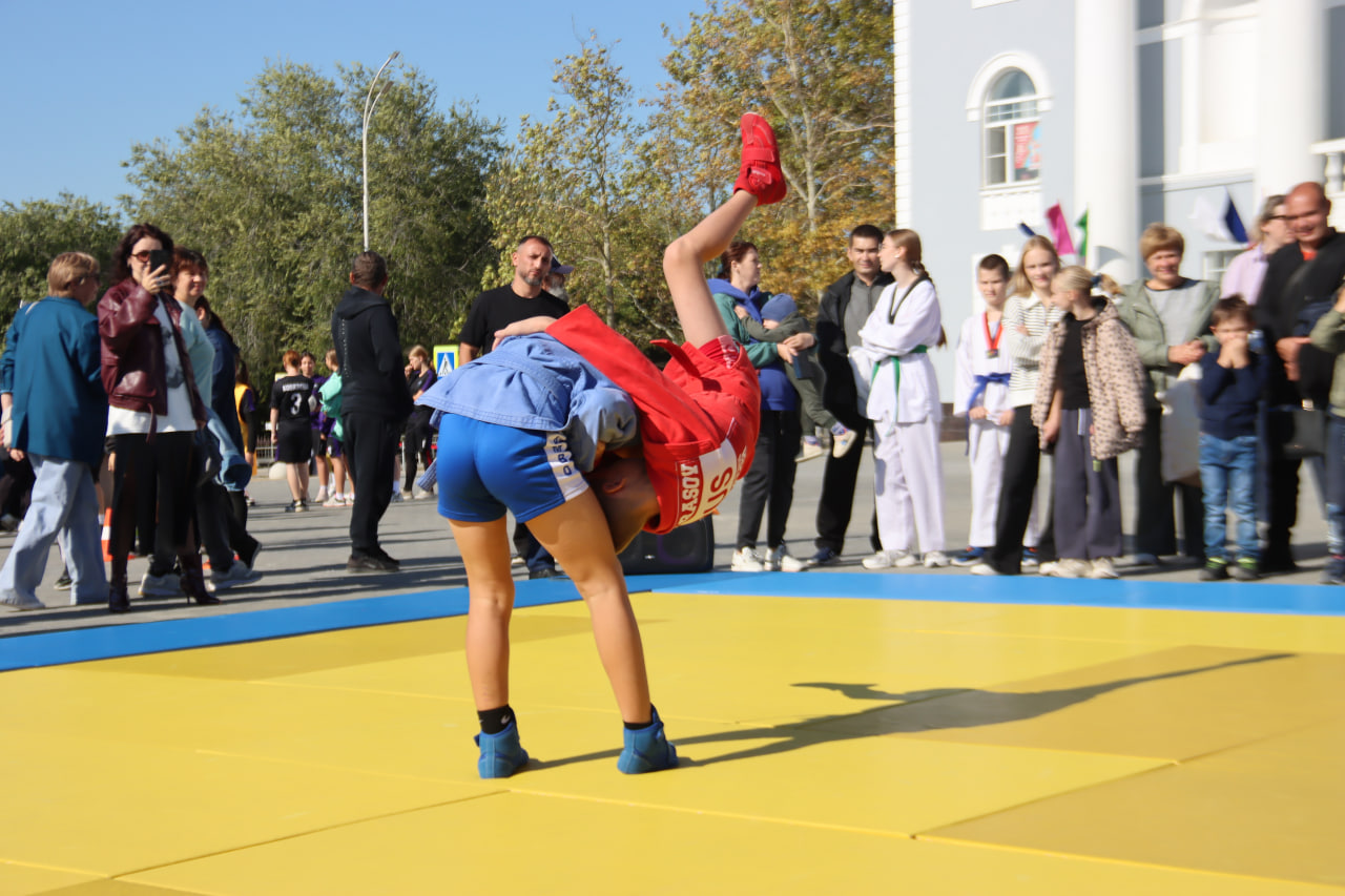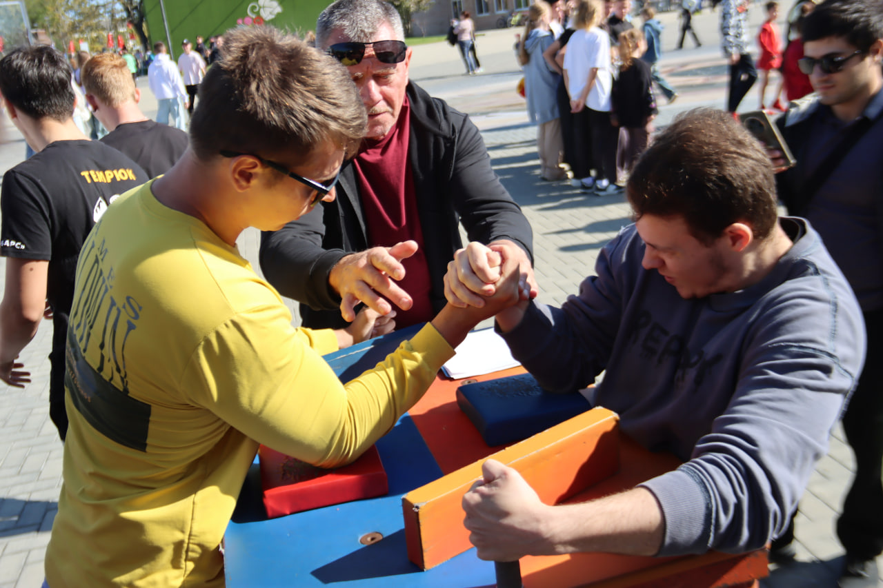 Фестиваль открыли показательные выступления: юные тхэквондисты демонстрировали сложные технические элементы, волейболисты — динамичную и слаженную разминку, а фехтовальщики и самбисты показали зрелищные поединки. Для любителей силовых видов спорта прошел турнир по армрестлингу среди юношей.