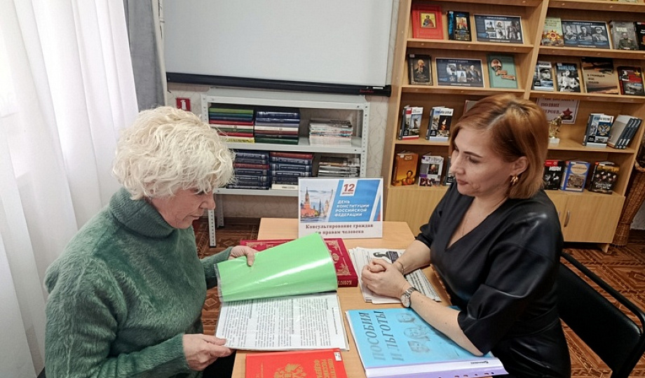 В День Конституции Российской Федерации специалисты отдела правовой информации провели прием граждан. Во время консультации заведующая отделом подробно обсудила важные вопросы жизни людей пенсионного возраста с точки зрения закона, рассказала о защите жилищных прав, медико-социальных гарантиях, особенностях службы социальной защиты, нюансах пенсионного законодательства, имущественных правах, правах наследования, правовом статусе работающих пенсионеров и многом другом.