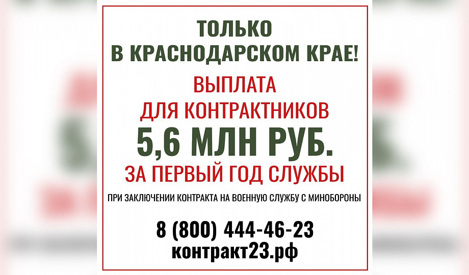 Заключившие контракт от Краснодарского края с Минобороны РФ до 31 октября 2025 года получат повышенную выплату