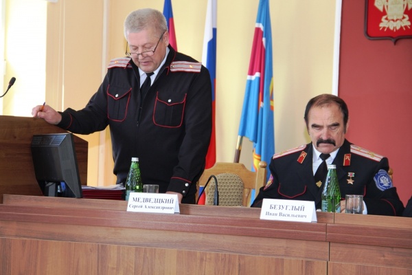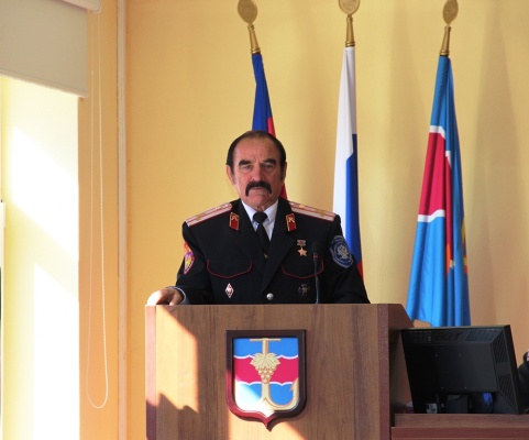 Александр Жилиборщ выступил с докладом о состоянии дел в Темрюкском РКО. Он отметил, что правление Темрюкского районного казачьего общества уделяет большое внимание вопросам взаимодействия с органами законодательной и исполнительной власти, охране общественного порядке, профилактической антинаркотической работе.