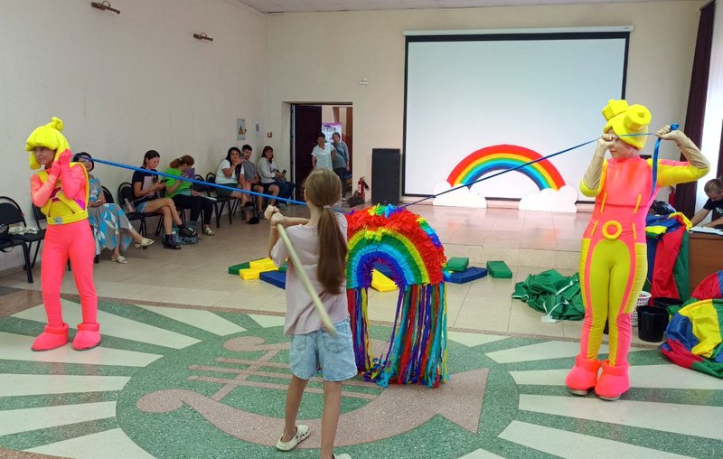 Чтобы сделать прощание с летом ещё более незабываемым, 30 августа сотрудники ГОК провели для юных друзей игровую программу «Прощаемся с летом!» в Городском Доме культуры. Вместе с любимыми Фиксиками ребята отправились в увлекательный квест, где им предстояло найти все цвета радуги, а в завершении ребята разбили яркую пиньяту, наполненную самыми вкусными сладостями.