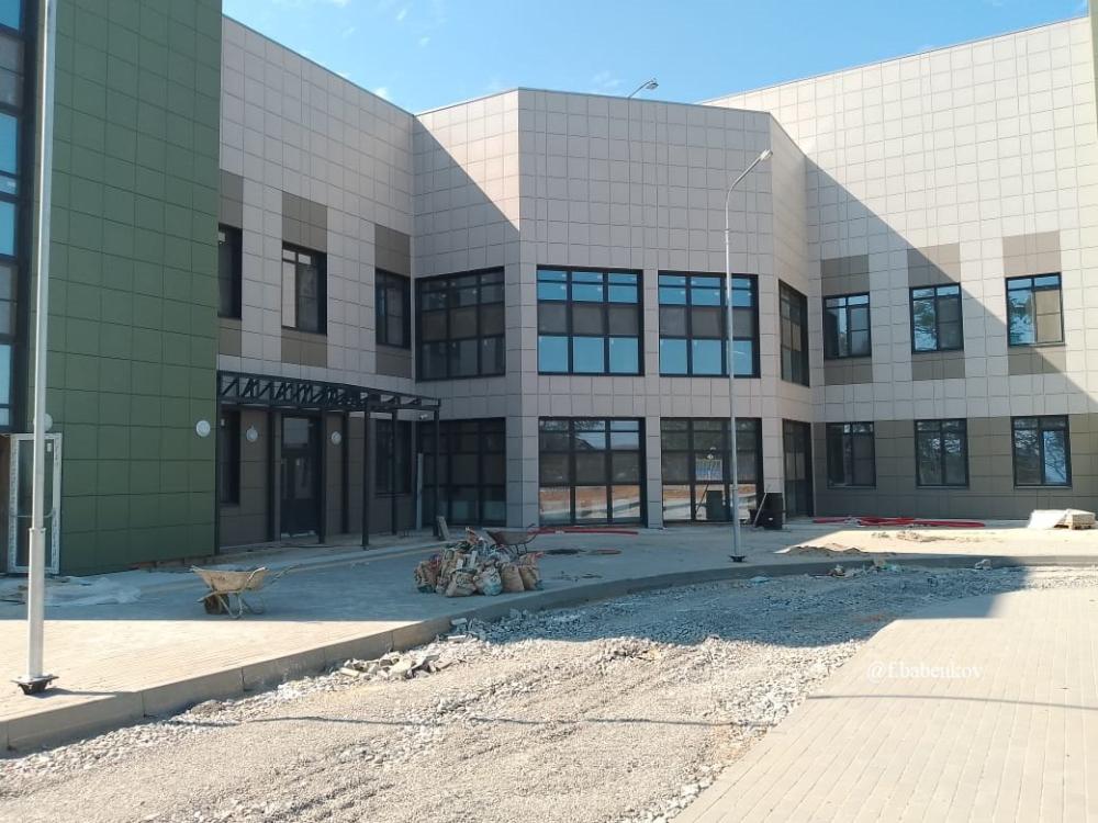 Параллельно проводится благоустройство территории: укладка плитки и асфальта. В рамках благоустройства запланировано строительство двух детских площадок и автостоянки на 64 места.