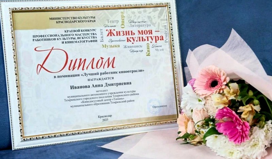 В номинации «Лучший работник киноотрасли» награждена Анна Иванова, методист учреждения культуры Темрюкского района «Кинодосуговый центр «Тамань».
