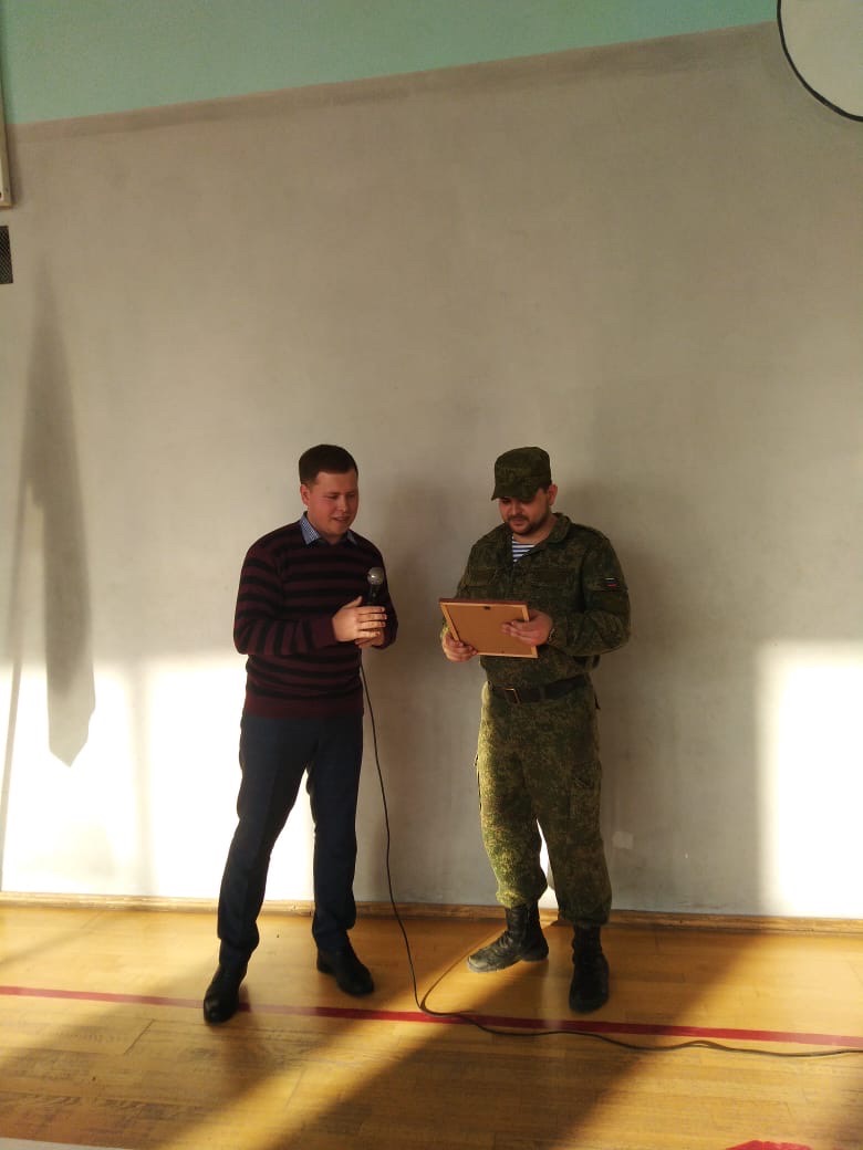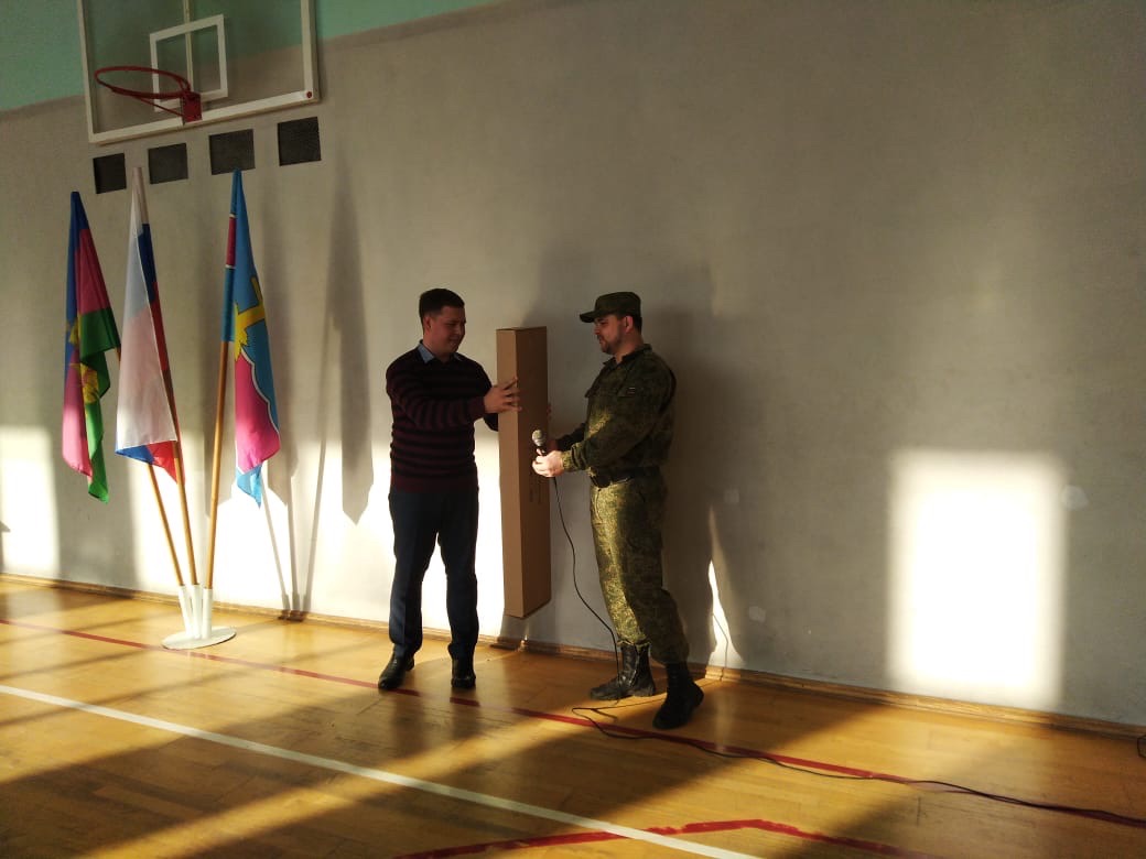 Председатель совета молодых депутатов Темрюкского района Юрий Васильев с приветственным словом обратился к участникам конкурса "А ну-ка, парни!" в МБОУ СОШ № 20 поселка Красный Октябрь. Также вручил благодарственное письмо руководителю ВПК "Отечество" А.А. Герасименко за успешную работу в патриотическом воспитании молодежи, а также подарил военно-патриотическому клубу "Отечество" новый макет массогабаритный АК-74 для обучения военно-прикладным видам спорта.