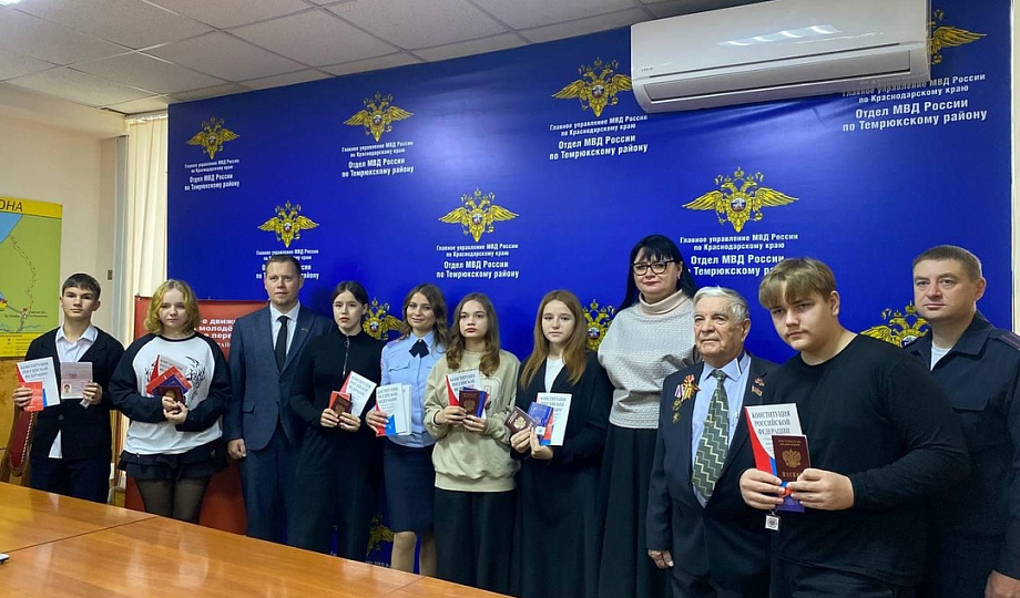 В рамках мероприятия заместитель председателя Совета молодых депутатов Темрюкского района Юрий Васильев вручил памятные подарки и паспорта пяти юным гражданам России, учащимся общеобразовательных школ Темрюкского района.