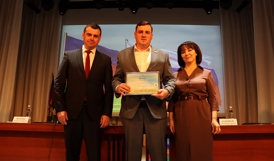 Заседание начали с торжественной части. Глава района и председатель районного Совета вручили награды лауреатам и участникам краевого конкурса «За благотворительность и добровольчество – Благотворитель Кубани».