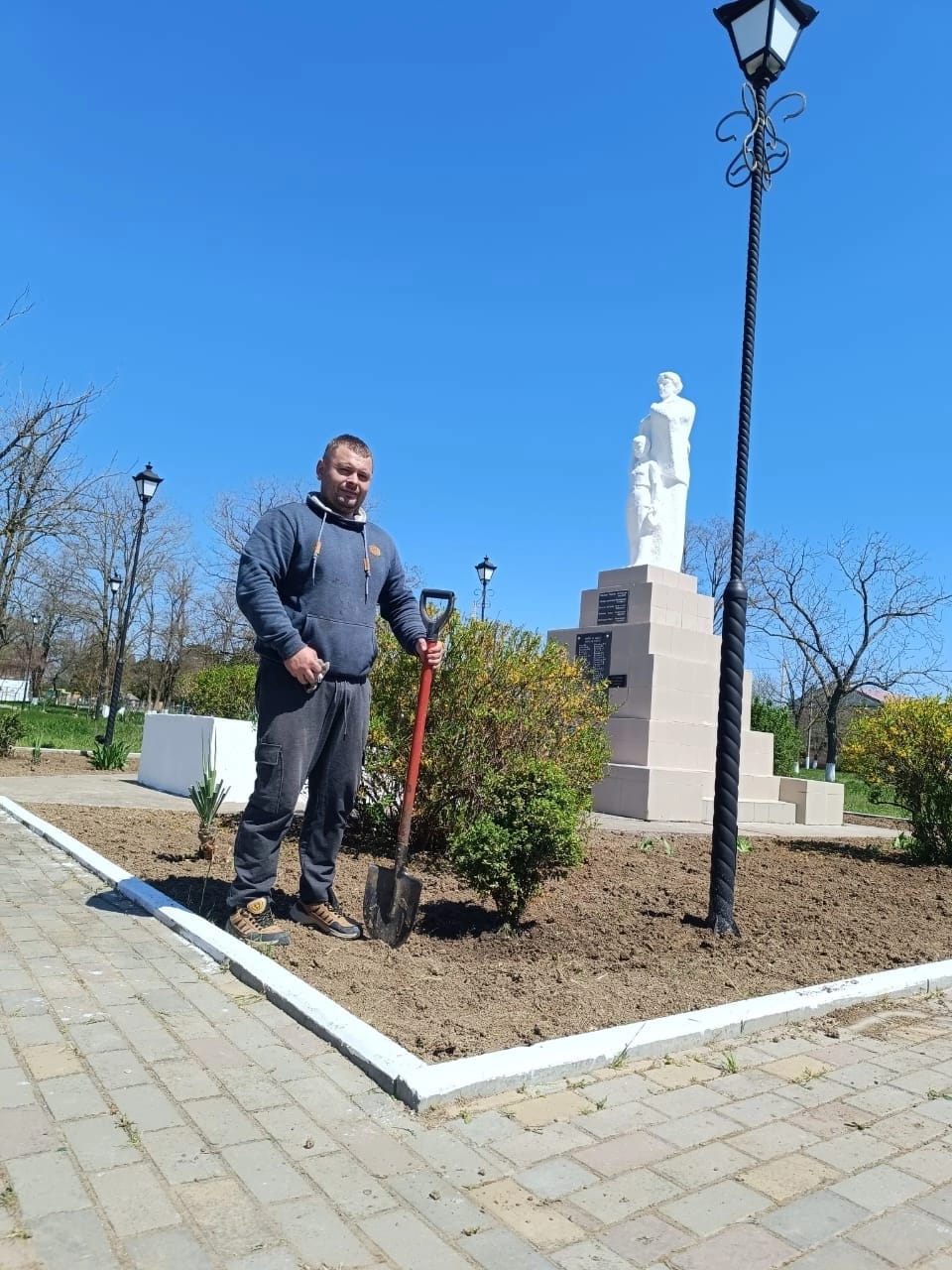 Молодой депутат Совета Запорожского сельского поселения Дмитрий Фроловский к празднику 80-летию Победы в Великой Отечественной войне высадил кусты самшита и облагородил клумбы около мемориала Скорбящей матери в п. Ильич. Мемориал Скорбящая мать символизирует горе и печаль, олицетворяет вечную материнскую любовь.