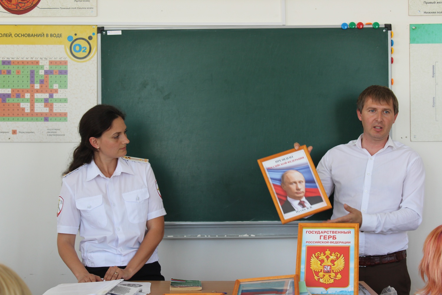 В рамках мероприятия сотрудник полиции и депутат Совета муниципального образования рассказали студентам о главных символах России и провели тематическую викторину. В завершении встречи подарили ребятам авторучки с надписью: «Моя Родина – Россия», а отличившимся активистам - памятные значки.
