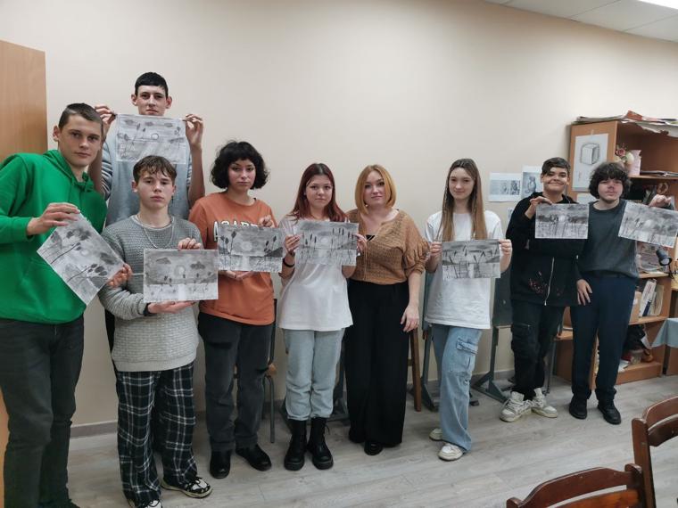 Молодёжь с радостью принимала участие в мастер-классе, где выполняли рисунок в технике "рисование углём". Каждый участник смог вложить частичку себя и поделиться своим творчеством с окружающими.